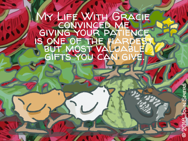 “My Life With Gracie…On Giving Patience” You can read it in full here if you’d like. (For me, I’m reminded of what I need to be more willing to give to others…and to myself.)