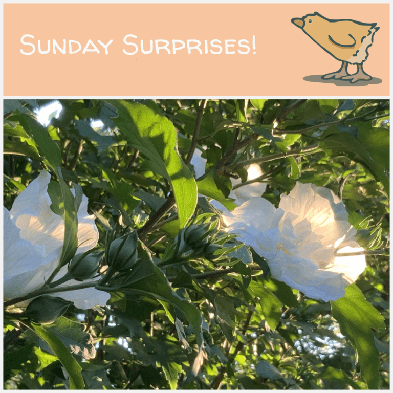 This one is a Double White Althea, just in case you wanted to find one for yourself. I bought two of these several years before I had any chickens, and I used them to anchor the far end of my garden raised beds. Now they anchor our big chicken coop and run and provide afternoon shade for their afternoon free-range area. We will be enjoying these blossoms throughout the summer months, and the beautiful bronze-toned seed pods in the autumn months.