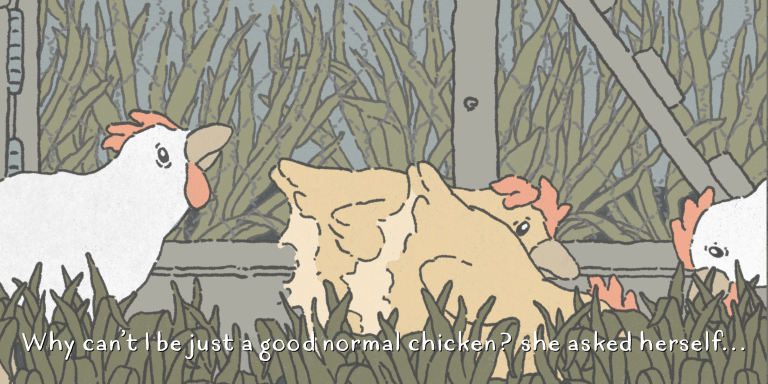 Wait….Pearl left or Blanche? Oh gosh..I’m stressed to read the rest of the book now 😉 Don’t you worry about anything. My kid likes the book anyhow. No matter what. She loves hearing about the chickens! And seeing your illustrations. I can always skip anything I think might upset her. She’s the kind of kid that not much upsets her . . . until it does. I’m never quite sure what might catch her off guard, but I’m lucky that not much seems to. She’s the kind of kid who can declare “That guy died. Oh well, that happens,” one day and the next day she’s crying about something else I never thought she’d cry about. It’s a crap shoot — this parenting thing. lol.